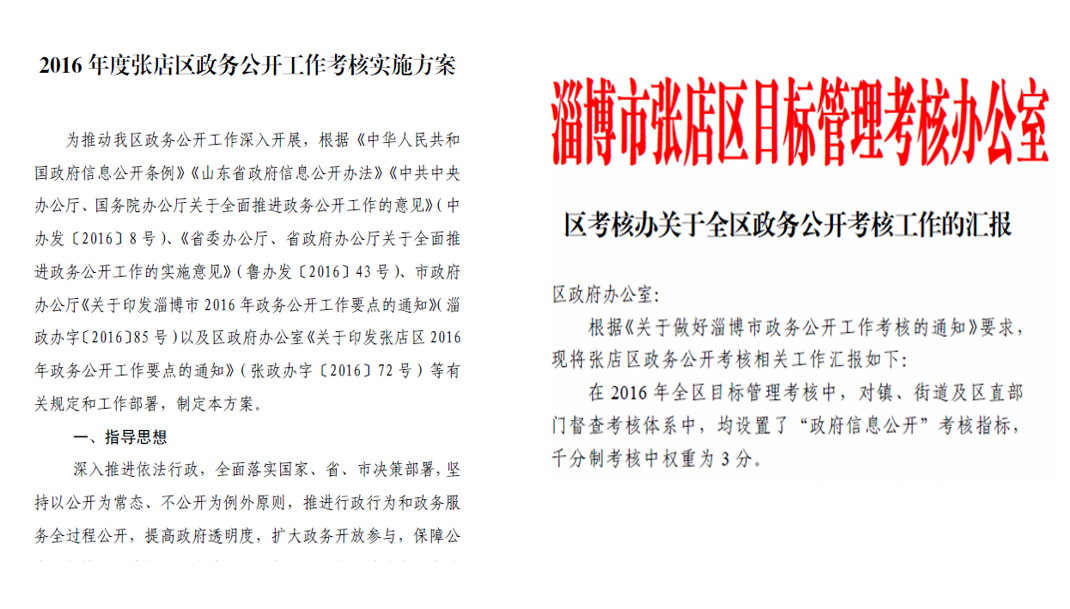 4、完善督查考核機(jī)制。我區(qū)制定了《2016張店區(qū)政務(wù)公開(kāi)工作考核實(shí)施方案》、《政府信息公開(kāi)責(zé)任追究辦法》,不定時(shí)通報(bào)各部門(mén)政府信息公開(kāi)工作推進(jìn)情況,每月在區(qū)政府網(wǎng)站公開(kāi)各單位區(qū)政府門(mén)戶(hù)網(wǎng)站保障情況,區(qū)政府辦公室按照市政務(wù)公開(kāi)工作考核實(shí)施方案的考核指標(biāo),結(jié)合本區(qū)的工作重點(diǎn)確定張店區(qū)政務(wù)公開(kāi)工作考核指標(biāo)及量化分值,并將考核結(jié)果納入全區(qū)黨政領(lǐng)導(dǎo)班子目標(biāo)管理考核,2016年的政務(wù)公開(kāi)工作考核涉及9個(gè)一級(jí)指標(biāo) ,43個(gè)二級(jí)指標(biāo),102個(gè)三級(jí)指標(biāo),共156項(xiàng)具體指標(biāo),對(duì)全區(qū)各政府信息公開(kāi)成員單位進(jìn)行了考核,考核分值在全區(qū)黨政領(lǐng)導(dǎo)班子目標(biāo)管理千分制考核中權(quán)重為3分。