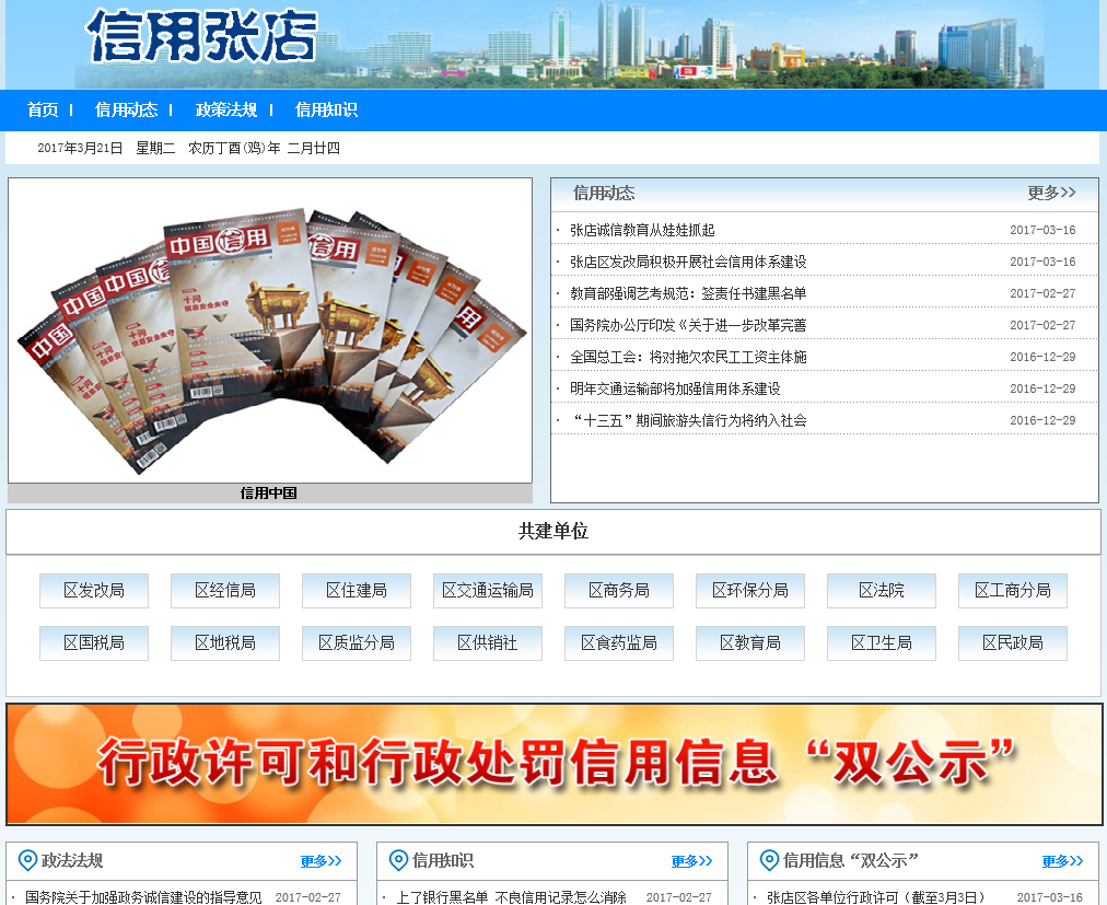 3、推進(jìn)信用信息體系工作。按照“雙公示”數(shù)據(jù)歸集統(tǒng)一標(biāo)準(zhǔn),及時(shí)將各有關(guān)部門(mén)在行政許可、行政處罰作出決定進(jìn)行匯總,并通過(guò)政府門(mén)戶(hù)網(wǎng)站“信用張店”專(zhuān)題“行政許可和行政處罰信用信息雙公示”欄目進(jìn)行公示,并同步推送至“信用淄博”、“信用山東”“信用中國(guó)”等網(wǎng)站, 2016年全年共計(jì)公布雙公示信息近16879條。