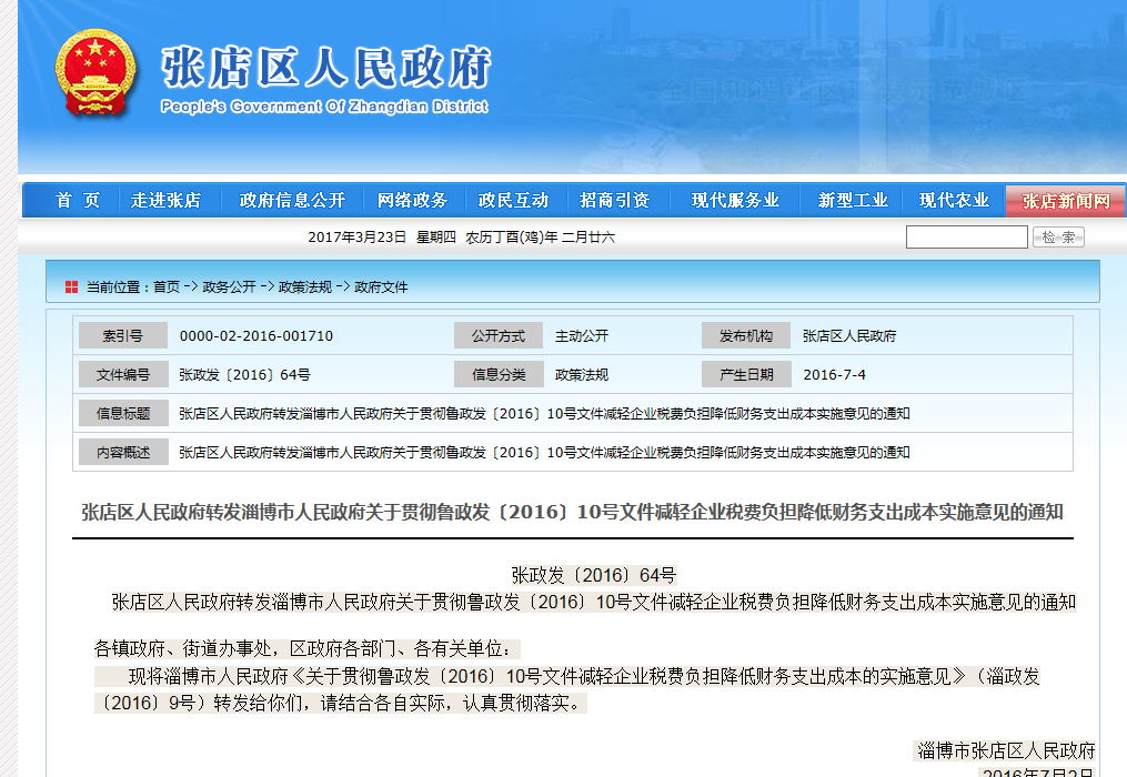 張店區(qū)人民政府2016年政府信息公開(kāi)工作年度報(bào)告