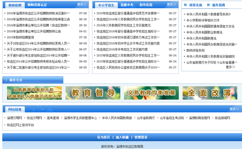 (1)教育領(lǐng)域信息公開(kāi)。結(jié)合我區(qū)教育工作實(shí)際,在《張店教育》網(wǎng)站上專(zhuān)門(mén)開(kāi)設(shè)《義務(wù)教育均衡劃片和進(jìn)城務(wù)工人員子女入學(xué)》、《教育督導(dǎo)》、《義務(wù)教育均衡發(fā)展》、《全面改薄》四個(gè)專(zhuān)欄,對(duì)涉及人民群眾切實(shí)利益、與孩子接受教育息息相關(guān)的政策、文件、規(guī)定、要求等都進(jìn)行了全面公開(kāi)。如在《義務(wù)教育均衡劃片和進(jìn)城務(wù)工人員子女入學(xué)》欄目中,對(duì)《張店區(qū)2016年義務(wù)教育段學(xué)校招生工作實(shí)意見(jiàn)》、《2016年張店區(qū)小學(xué)招生簡(jiǎn)章》、《張店地區(qū)2016年義務(wù)教育段民辦學(xué)校招生工作實(shí)施方案》以及《張店區(qū)中小學(xué)招生劃片圖》等都進(jìn)行了主動(dòng)公開(kāi),并就家長(zhǎng)重點(diǎn)關(guān)心的問(wèn)題進(jìn)行了政策解讀,充分解答家長(zhǎng)疑問(wèn),讓人民群眾對(duì)我區(qū)中小學(xué)生入學(xué)工作有了更充分的了解?!对诹x務(wù)教育均衡發(fā)展》、《全面改薄》、《教育督導(dǎo)》等欄目,教育局也將涉及群眾利益的學(xué)校建設(shè)、薄弱學(xué)校升級(jí)改造、學(xué)校教育教學(xué)質(zhì)量提升等方面的問(wèn)題進(jìn)行了公開(kāi)。2016年,教育局共在四個(gè)專(zhuān)欄共公開(kāi)文件22件。