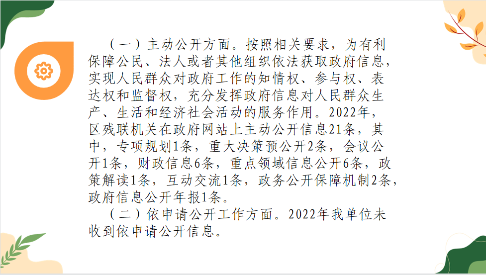 【圖文解讀】淄博市張店區(qū)殘疾人聯(lián)合會(huì)機(jī)關(guān)2022年政府信息公開工作年度報(bào)告解讀