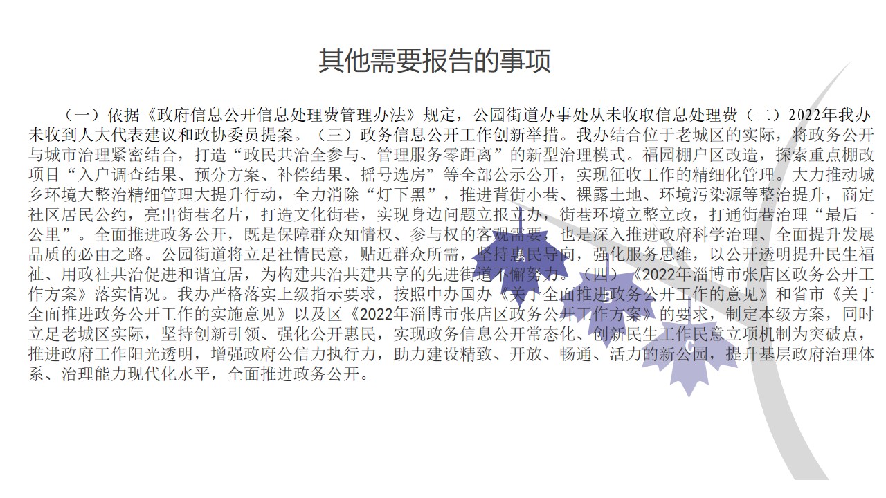 張店區(qū)人民政府公園街道辦事處2022年政府信息公開(kāi)工作年度報(bào)告