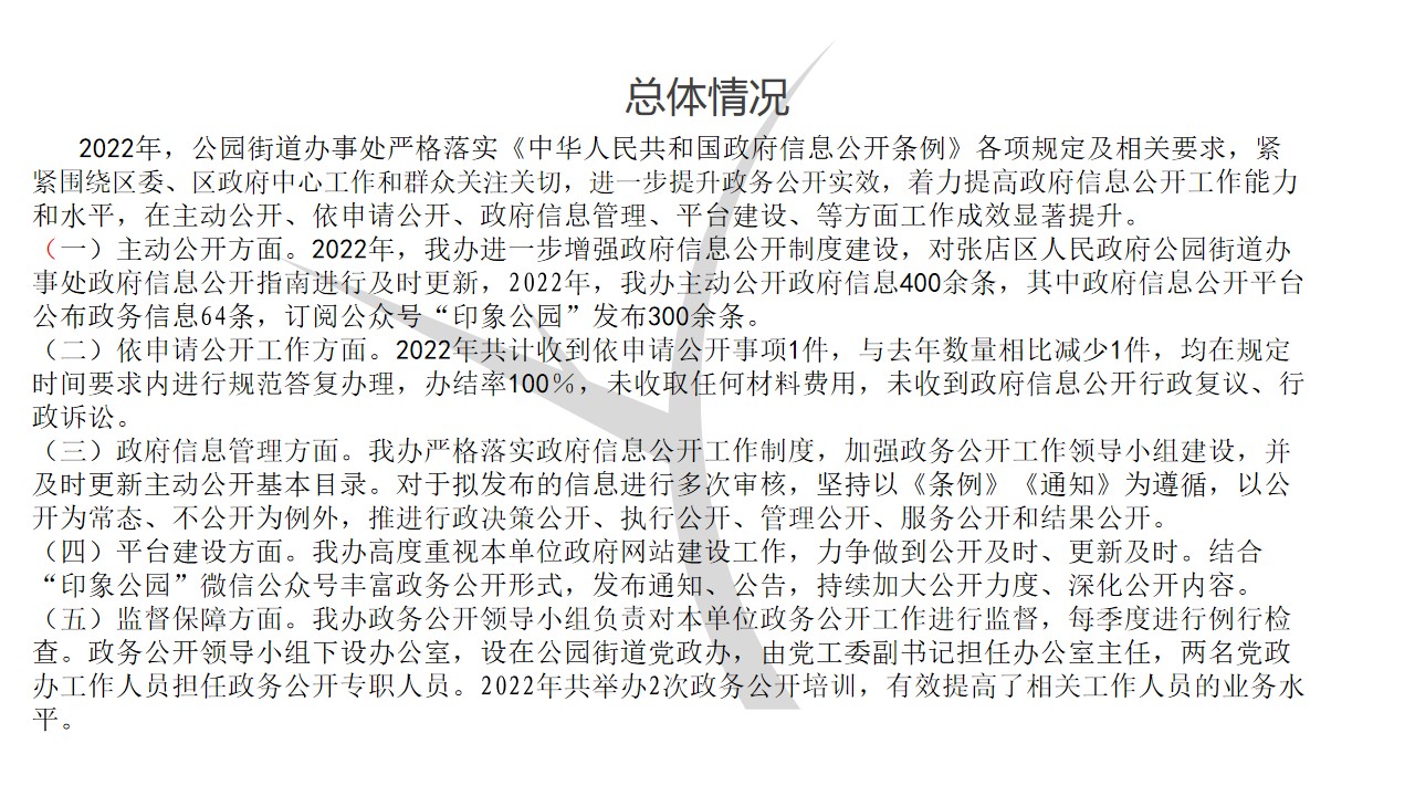 【圖文解讀】張店區(qū)人民政府公園街道辦事處2022年政府信息公開(kāi)工作年度報(bào)告