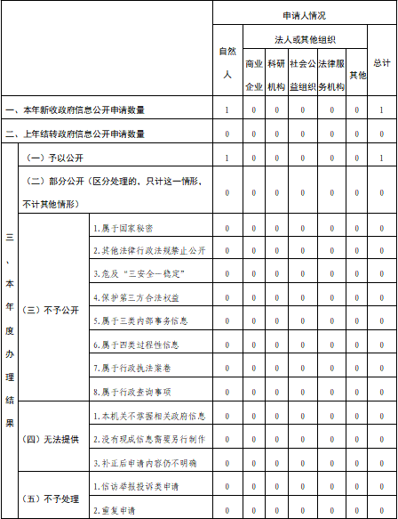 (二)依申請公開工作方面。2022年共計收到依申請公開事項1件,與去年數(shù)量相比減少1件,均在規(guī)定時間要求內(nèi)進行規(guī)范答復辦理,辦結(jié)率100%,未收取任何材料費用,未收到政府信息公開行政復議、行政訴訟。
