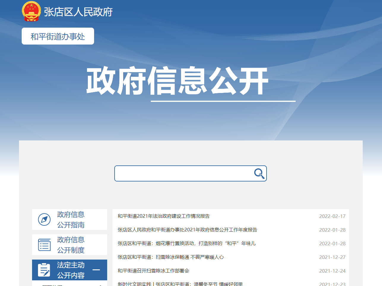 張店區(qū)人民政府和平街道辦事處2021年政府信息公開工作年度報告