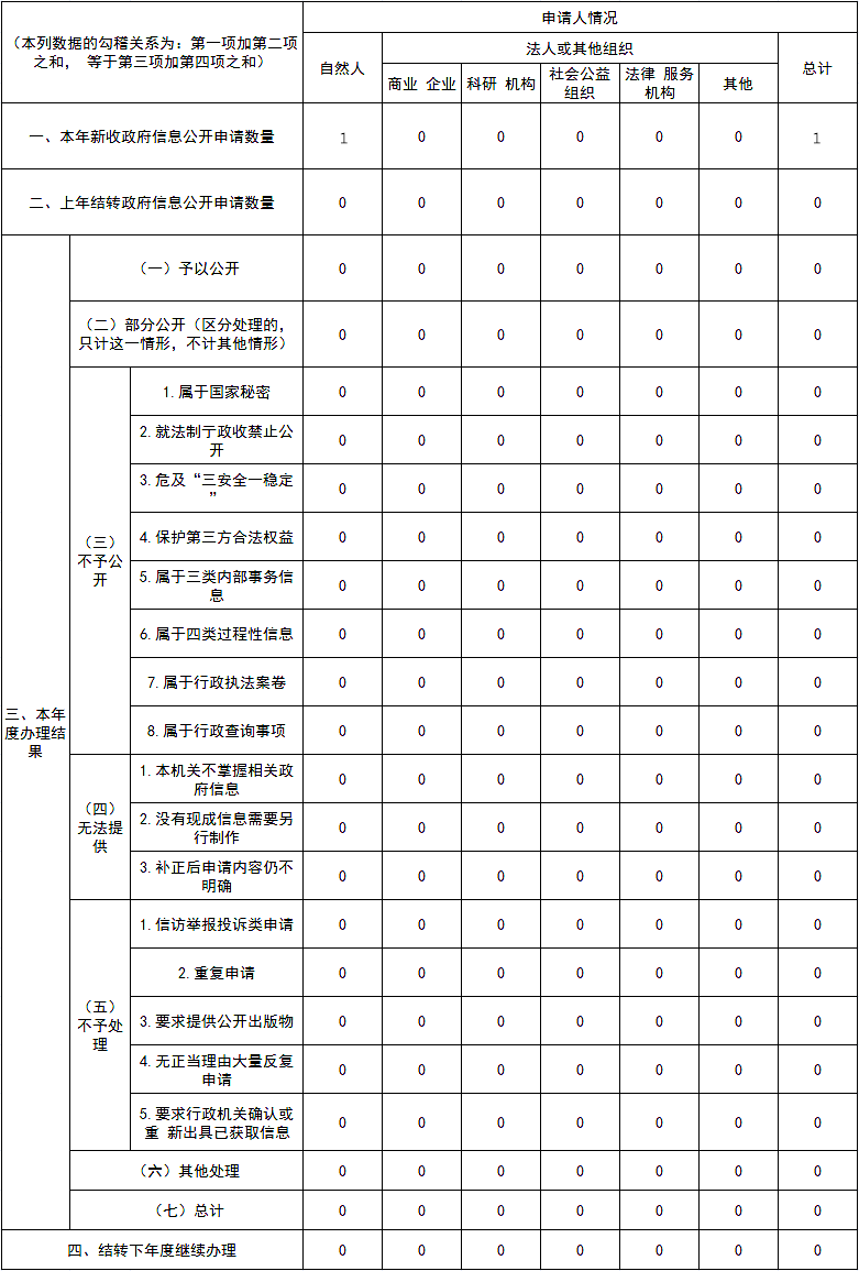 三、收到和處理政府信息公開申請情況
