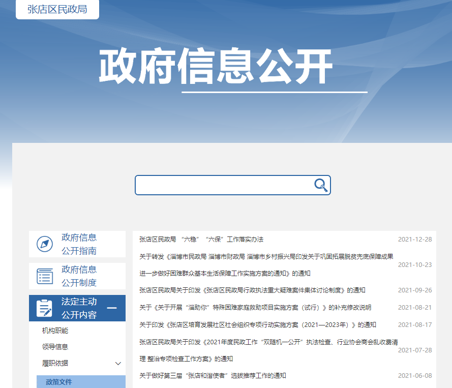 2021年,張店區(qū)民政局認(rèn)真貫徹執(zhí)行《中華人民共和國政府信息公開條例》和《張店區(qū)人民政府辦公室關(guān)于印發(fā)2021年張店區(qū)政務(wù)公開工作要點(diǎn)的通知》要求,切實(shí)加強(qiáng)政府信息公開制度建設(shè),實(shí)施了一系列促進(jìn)民政政務(wù)公開的舉措,不斷拓展民政政府信息公開的內(nèi)容,豐富公開的形式,政府信息公開各項(xiàng)工作順利開展。