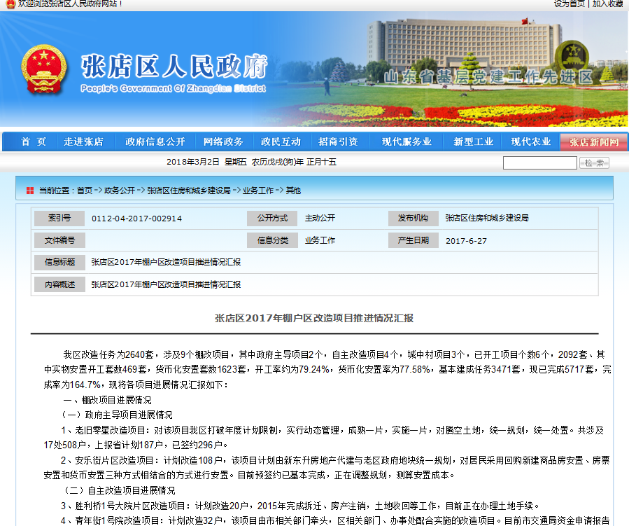 通過印發(fā)工作手冊、網(wǎng)絡(luò)、新聞媒體等渠道對棚戶區(qū)改造政策及相關(guān)任務(wù)完成情況信息公開工作,主動發(fā)布和準(zhǔn)確解讀政策措施,為棚改工作營造良好社會氛圍。今年重點抓好齊賽片區(qū)等9個已開工棚戶區(qū)建設(shè),啟動安樂街片區(qū)等9個新項目建設(shè);對梅苑社區(qū)等24個老舊片區(qū)實施整治改造,年底前51個老舊片區(qū)全部改造完畢;并同步在張店區(qū)政府網(wǎng)公開發(fā)布。在危房改在過程中,對補助對象、改造方式及要求、投資完成等情況在張店區(qū)政府網(wǎng)進(jìn)行公開,同時在相關(guān)鎮(zhèn)、村公示欄中心對名單中的危房戶進(jìn)行信息公示。