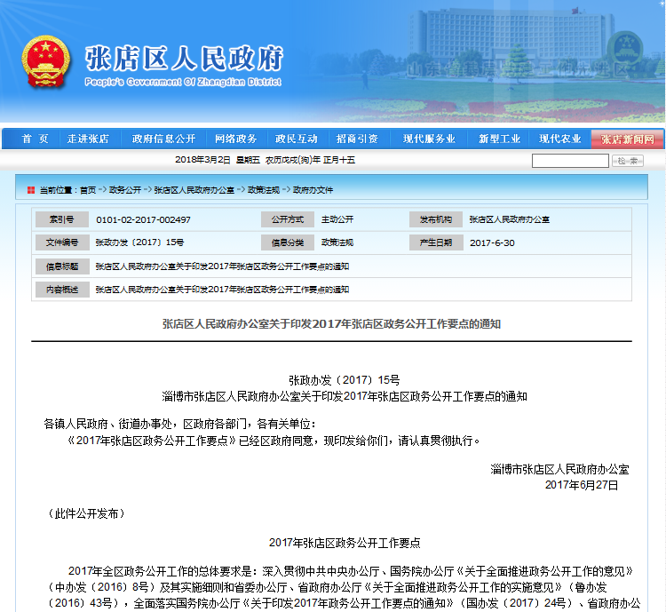 | 標(biāo)題: | 張店區(qū)人民政府2017年政府信息公開工作年度報告 | ||