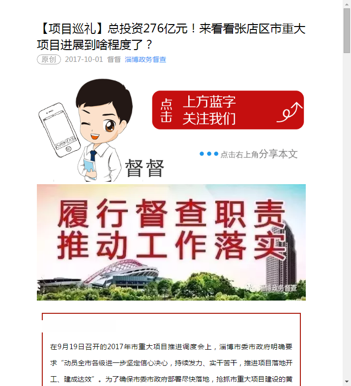 區(qū)委區(qū)政府高度重視市重大項目建設(shè),始終把加快項目建設(shè)作為新舊動能轉(zhuǎn)換主抓手,成立了重點建設(shè)項目推進(jìn)工作領(lǐng)導(dǎo)小組,繼續(xù)實行領(lǐng)導(dǎo)掛包制度,建立了聯(lián)席會議制度,出臺了《張店區(qū)“重點項目建設(shè)要有新突破”考評排名辦法》,搞好要素保障,落實優(yōu)惠政策,積極落實一線工作法,明確任務(wù),落實責(zé)任,強力推進(jìn),市重大項目建設(shè)取得明顯成效。對重大產(chǎn)業(yè)類項目和重大民生類項目,開辟審批綠色通道,審批過程遵循“一窗受理、一次告知、從簡從快、限時辦理、超時問責(zé)”原則,加大在線監(jiān)測、項目稽查、執(zhí)法檢查等監(jiān)督執(zhí)法信息的公開力度,以公開促進(jìn)公共產(chǎn)品供給質(zhì)量提升。按照國務(wù)院、省政府、市政府部署,2017年所有審批項目都通過山東省投資項目在線審批監(jiān)管平臺、淄博市全市網(wǎng)上審批系統(tǒng),行政審批服務(wù)中心電子顯示屏等載體向社會公開,接受社會監(jiān)督。