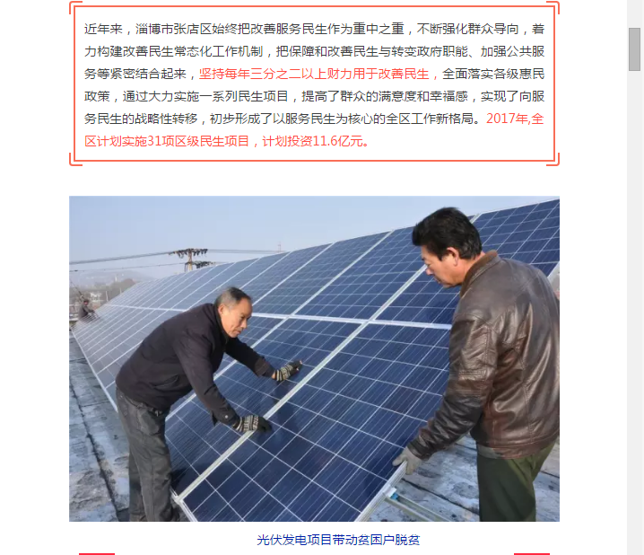 重點完善了醫(yī)療救助、臨時救助等制度,實現(xiàn)農(nóng)村低保線和扶貧線“兩線合一”。將改善弱勢群體生活狀況作為民生工作的重點,進(jìn)一步擴(kuò)大低保邊緣家庭界定范圍,2017年將低保邊緣家庭的界定標(biāo)準(zhǔn)確定為農(nóng)村家庭年收入3560元以下、城市人均收入每月500元以下,同比分別上調(diào)16.7%、11.1%。率先在全市實現(xiàn)低保線與扶貧線“兩線合一”,穩(wěn)定實現(xiàn)農(nóng)村貧困人口“兩不愁、三保障”目標(biāo)。利用中埠鎮(zhèn)小學(xué)、張店區(qū)第十一中學(xué)、衛(wèi)生院、成教中心、鎮(zhèn)政府等屋頂建設(shè)光伏發(fā)電產(chǎn)業(yè)項目,帶動中埠鎮(zhèn)155戶貧困戶,每年戶均收益770元左右。