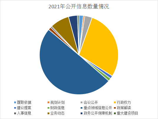 (六)全年公開信息數(shù)量165條。其中:履職依據(jù)3條,規(guī)劃計劃1條,會議公開5條,行政權(quán)力47條,建議提案2條,財政信息2條,重點領(lǐng)域信息公開82條,政策解讀2條,人事信息1條,業(yè)務(wù)動態(tài)13條,政務(wù)公開保障機制6條,重大建設(shè)項目1條。