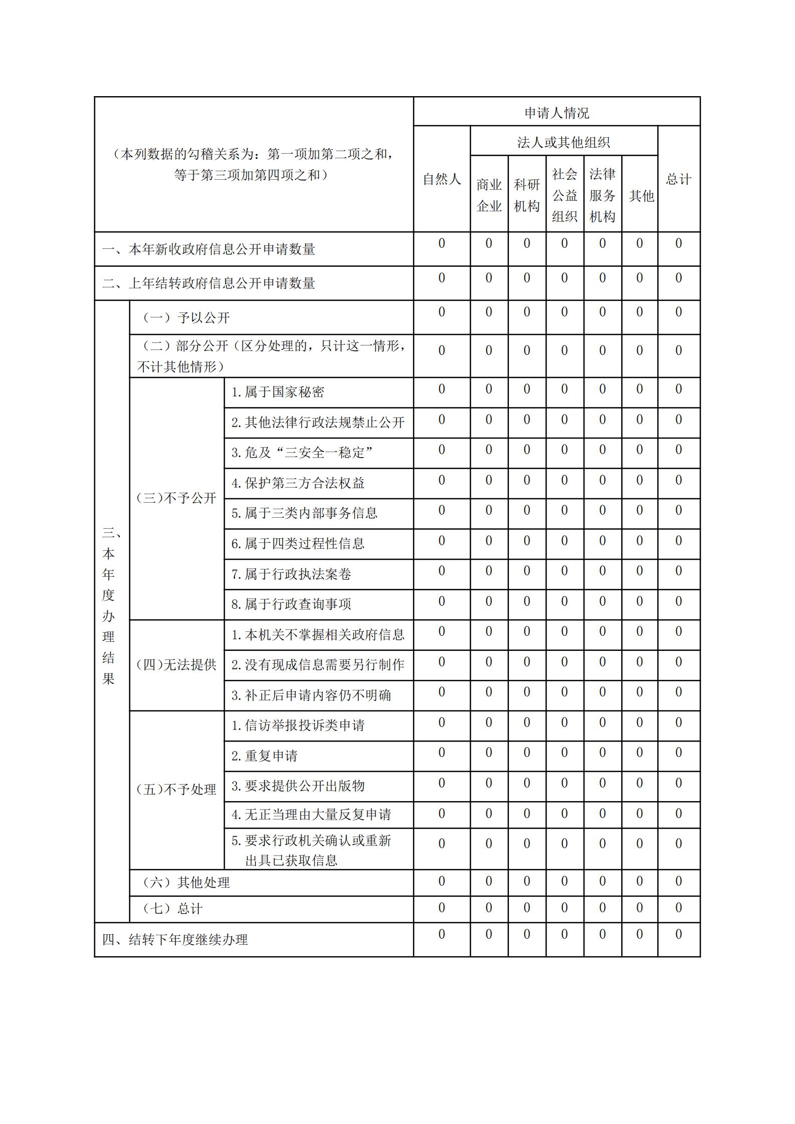 三、收到和處理政府信息公開申請情況